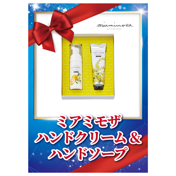 | 内容 | ハンドクリーム(約50g)・ハンドソープ(約50ml)×各1 A4パネル×1 |