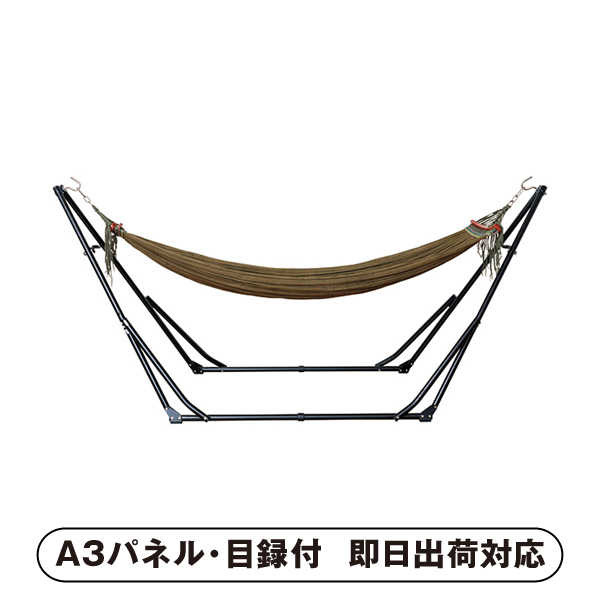 | 内容 | 本体(使用時:約730×2480×870mm/収納時:約1150×200×200mm)・ハンガーロッド・収納バッグ・ハンモックベルト×各1 A3パネル×1 |