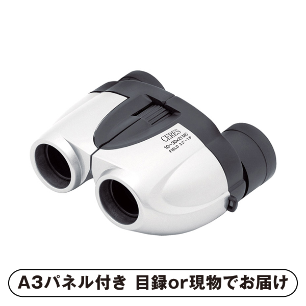 10〜30倍のズーム式双眼鏡。見たいものによって倍率が変えられ、より大きく見たいというときに便利です。ケース・ストラップ付。・倍率:10〜30倍・対物レンズ有効径:21mm