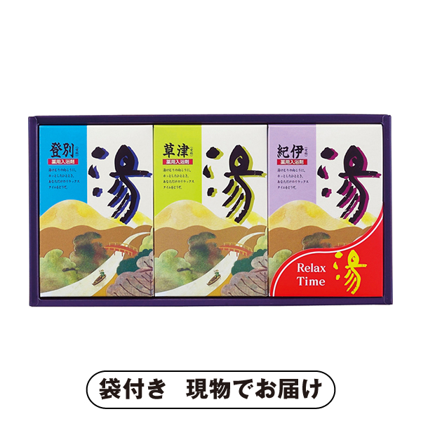 | 内容 | 薬用入浴剤(登別・草津・紀伊)(各25g×5袋)×各1 |
