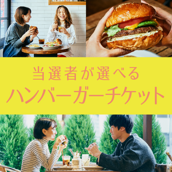 詳しくはこちら「手作り」にこだわるバーガーショップで、食事を楽しめるギフトチケット。関東と関西を中心にした約30店舗の中から、好きなお店を選び3,000円分の食事に利用できます。厳選バンズで挟んだ粗挽きパティにかぶりつくと、じゅわっと肉汁があふれ出す。喉を鳴らしながらコーラを流し込む。もちろんポテトは熱々の揚げたて。一度ハマると抜け出せなくなる、奥深いハンバーガーの世界へご案内します。イベントや二次会、コンペなど、どんなシーンでも活躍。選べる体験が、当たった人それぞれの特別な時間を演出します。