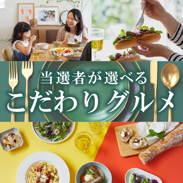 詳しくはこちらグロッサリーストアでわくわくしながら買い物をするように、食べてみたい食品を選べるグルメカタログ。希少な食材が使われていたり、地域や地球にやさしい工夫がつまっていたり…。製造背景や製法など、興味深いストーリーも味わえる食品を掲載しています。大切な人に贈る食べ物だから、丁寧にこだわって作られた、おいしくてやさしいものを。多彩な体験の中から自由に選べるから、好みを問わず満足度◎。景品選びに迷ったときの、間違いない一冊です。