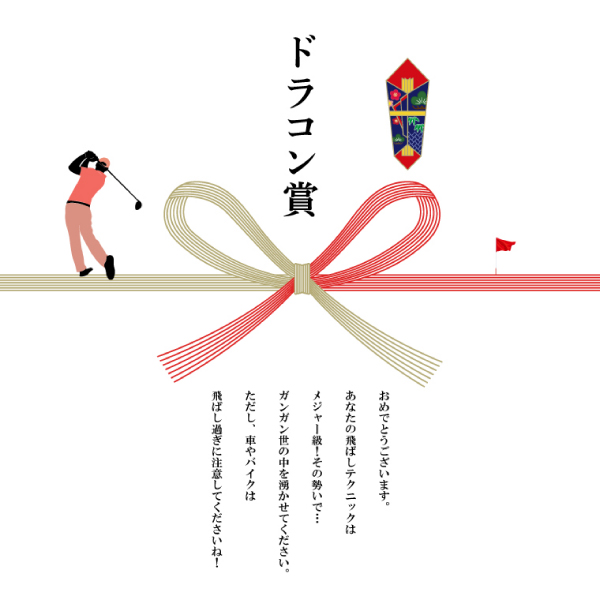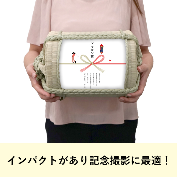 一番の飛ばし屋に贈られるドラコン賞。ゴルフの中でも盛り上がる賞になります。米俵を担いだ写真は映えもばっちりで、SNSやアイコンにしてみんなに自慢しちゃいましょう。自分で買うことのない米俵を家族に持ち帰ると、みんなの笑顔や会話も増えて、喜びを分かち合うことができます♪ちょっとクスっと笑えるのし付きでお届けします。