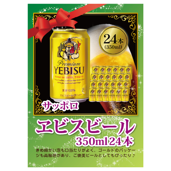 生ビール サッポロ ヱビスビール 350ml 24本【パネル・目録付】|景品ならPIARY(ピアリー)
