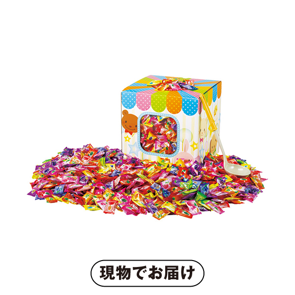 | 内容 | フルーツ10キャンディ×約800、付属品:BOX(約265×265×265mm)×1、お持ち帰り袋×100、お玉×1 |