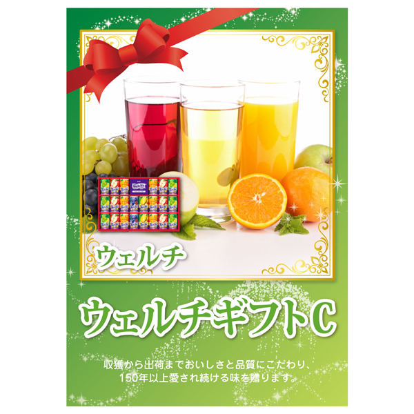 果汁100%といえば『ウェルチ』。濃厚で上質な味わいが魅力です。収獲から出荷までおいしさと品質にこだわり、150年以上愛され続ける味を贈ります。子どもから大人までみんながもらって楽しめる贈り物です。