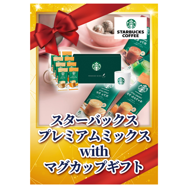 | 内容 | プレミアムミックスカフェラテ(18g)・プレミアムミックスキャラメルラテ(23g)×各4、マグカップ×1 A4パネル×1 |