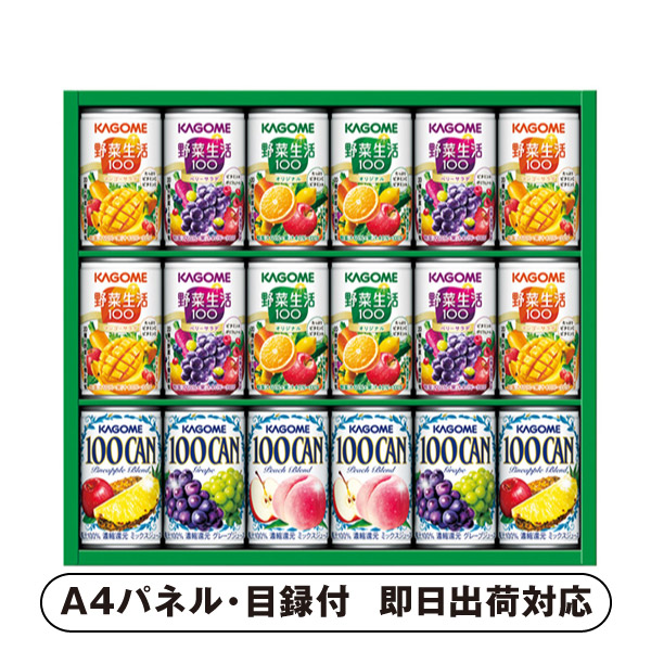 100%フルーツジュースのベストセラー「100CAN」と野菜&フルーツの美味しさが人気の「野菜生活100」の詰合せ。