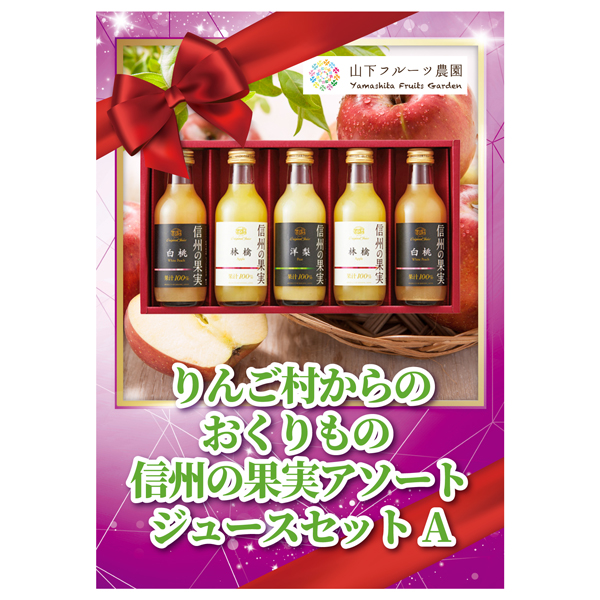 | 内容 | 林檎ジュース(200ml)・白桃ジュース(200ml)×各2、洋梨ジュース(200ml)×1 A4パネル×1 |