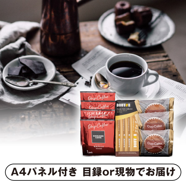 都心部を中心に展開するカフェチェーン「エクセルシオールカフェ」のドリップコーヒーと軽い口当たりのケーキを詰め合わせたギフト。自宅でカフェ気分を楽しめ、ブレイクタイムや贈り物に最適です。