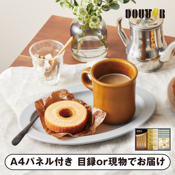 | 内容 | バウムクーヘン・ドトールカフェ・オ・レ9.5g×各4、ドトールドリップコーヒー深煎りブレンド7g×5 A4パネル×1 |
