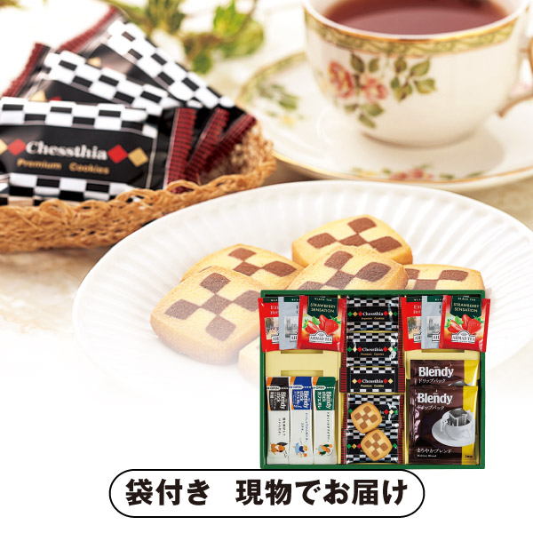 | 内容 | チェスティアクッキー×4、AGFブレンディコーヒードリップ式7g・紅茶(アールグレイ・イングリッシュブレックファースト・ストロベリー)2g×各2、AGFブレンディスティック(エスプレッソ・オレ5.8g・カフェオレカロリーハーフ5.4g・カフェオレ8.2g)×各1 |