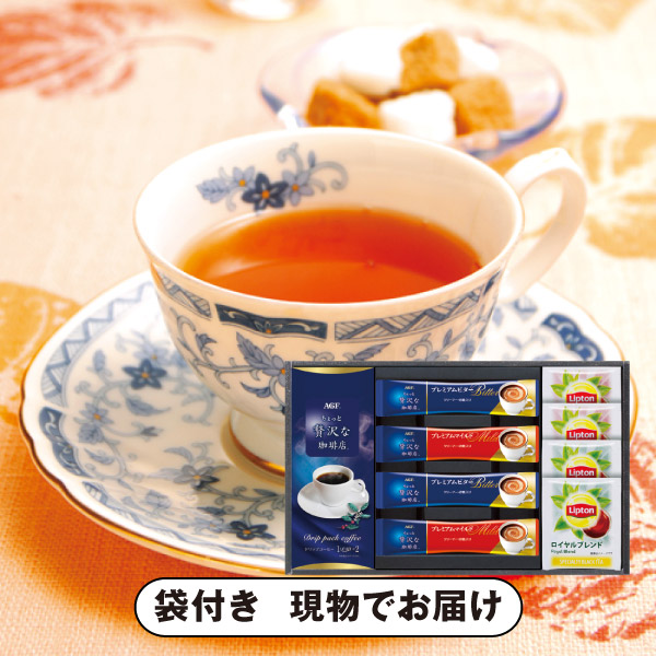| 内容 | AGF ちょっと贅沢な珈琲店スペシャルブレンド(7g×2)×1、AGF ちょっと贅沢な珈琲店(プレミアムマイルド7g・プレミアムビター7g)・リプトン(ロイヤルブレンドティーバッグ2.2g・セイロンティーバッグ2.2g)×各2 |