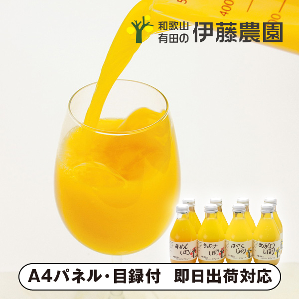 内容 | 180ml×8(みかん・きよみ・はっさく・あまなつ×各2) A4パネル×1 |