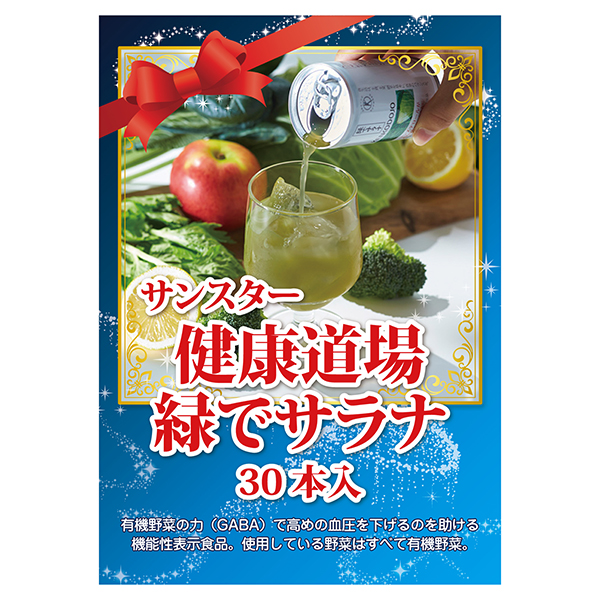 有機野菜の力(GABA)で高めの血圧を下げるのを助ける機能性表示食品。使用している野菜はすべて有機野菜。野菜のうまみを引き出す乳酸菌発酵と、野菜を食べているような食感を生み出すすりつぶしピューレを配合。 着色料、保存料、香料、食塩、砂糖は一切不使用(※1)です。 ※1砂糖は使用しておりませんが、原材料由来の糖類は含まれます。届出表示:本品にはGABAが含まれています。GABAには血圧が高めの方の血圧を下げる機能が報告されています。(届出番号:F921)。高めの血圧:正常高値血圧収縮期130−139mmHgまたは拡張期80−85mmHg。食生活は、主食、主菜、副菜を基本に、食事のバランスを。健康道場緑でサラナ缶160g×30本入