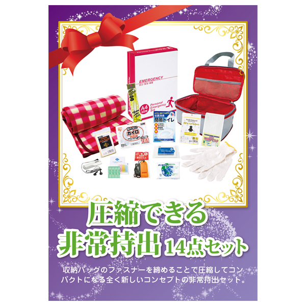 圧縮できる非常持出14点セット【パネル・目録付】|景品ならPIARY(ピアリー)