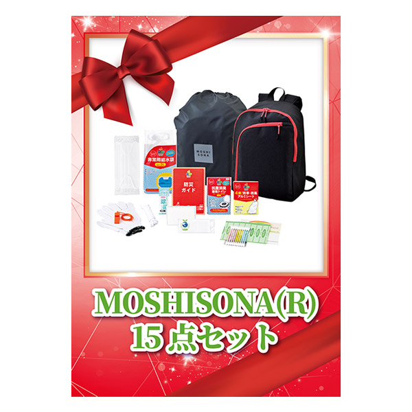 | 内容 | MOSHISONA(R)デイバッグ(約420×290×150mm)×1、4層!防寒・防風アルミシート・防災ガイド・軍手・ロープ(3m)・笛・抗菌消臭簡易トイレ・非常用給水袋(約3l)・ポケットティッシュ・個装マスク・除菌ジェル(約15ml)・eco便利バッグ・レインカバー×各1、絆創膏×5、綿棒×10 A4パネル×1 |