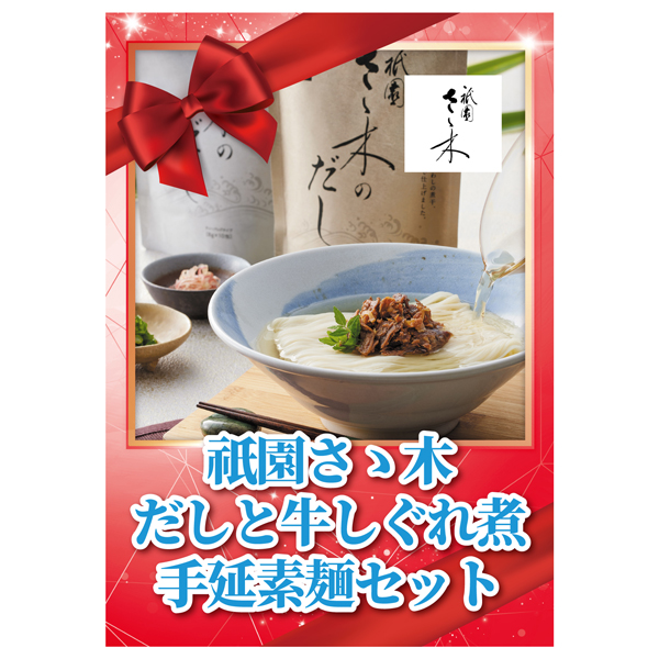 京割烹店「祇園さゝ木」こだわりのだしパック「匠」、生姜の風味が広がる牛しぐれ煮、寒造り手延べ素麺を詰め合わせたセットです。それぞれを単品で楽しめるほか、だしパックで取った上品なだしを素麺つゆに仕立て、牛しぐれ煮を添える食べ方もおすすめです。