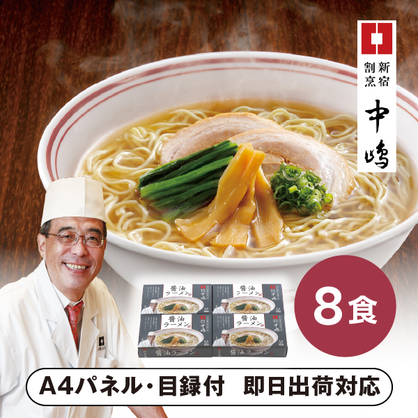 | 内容 | 〈乾麺〉70g×2食入×4箱/計8食(スープ付) A4パネル×1 |