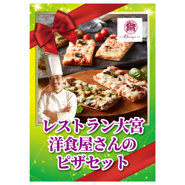 大宮シェフこだわりの“みみ”のない四角いピザ生地は、外は香ばしく中はもっちりとした食感。どこを食べても具材の美味しさが広がります。定番マルゲリータと、特製デミグラスソースを使ったハッシュドビーフの冷凍ピザをセットでお届けします