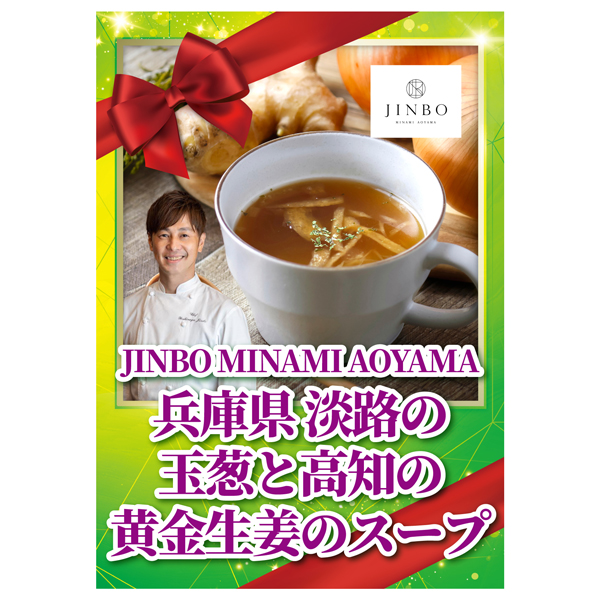 「JINBO MINAMI AOYAMA」の神保シェフ監修による、野菜の旨味を凝縮したフリーズドライスープです。オリーブオイルでソテーした淡路島産玉ねぎのやさしい甘みと、高知県産黄金生姜のほどよい辛味が調和した、後を引く味わいに仕上げました。