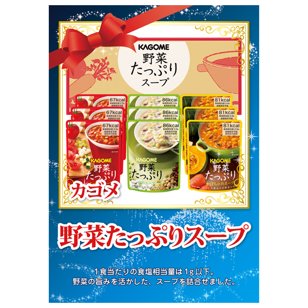 1食当たりの食塩相当量は1g以下。野菜の旨みを活かした、スープを詰合せました。
