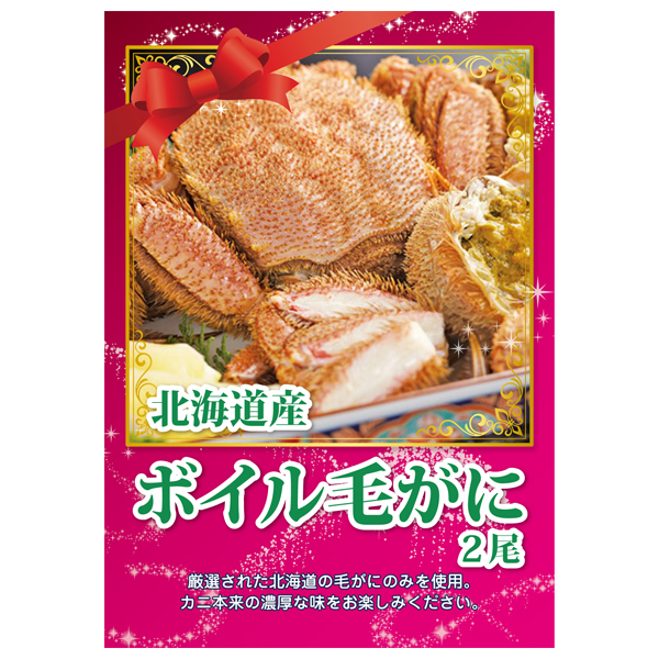 | 内容 | ボイル毛がに(400g)×2尾 A4パネル×1 |
