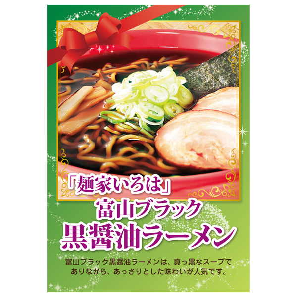 富山発祥の黒いラーメン「麺家いろは」富山ブラック黒醤油ラーメンは、真っ黒なスープでありながら、あっさりとした味わいがクセになると人気です。お店の味をご家庭でお楽しみいただけます!贈り物にもおすすめです。