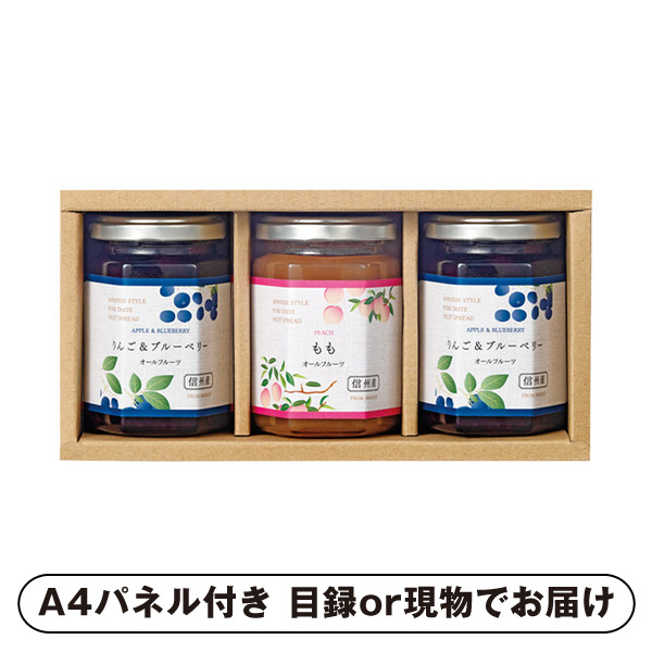 | 内容 | りんご&ブルーベリースプレッド(140g)×2、ももスプレッド(140g)×1 A4パネル×1 |