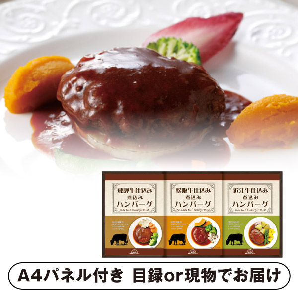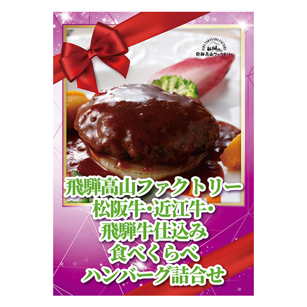 飛騨高山ファクトリー 松阪牛・近江牛・飛騨牛仕込み食べくらべハンバーグ詰合せ A【パネル・目録付】|景品ならPIARY(ピアリー)