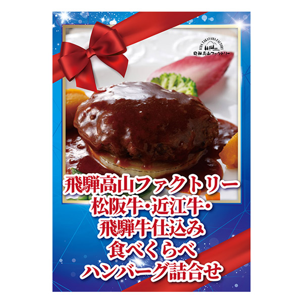 飛騨高山ファクトリー 松阪牛・近江牛・飛騨牛仕込み食べくらべハンバーグ詰合せ B【パネル・目録付】|景品ならPIARY(ピアリー)