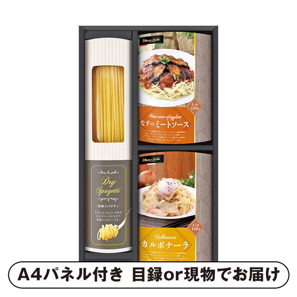 | 内容 | スパゲティ(130g)・パスタソース(茄子のミートソース)(140g)・パスタソース(カルボナーラ)(140g)×各1 A4パネル×1 |