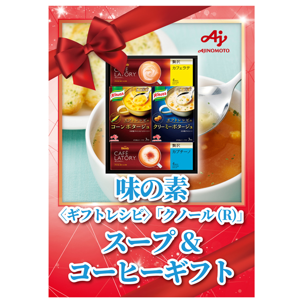 朝食や間食などさまざまなシーンで、お子様から大人まで幅広く楽しんでいただける〈ギフトレシピ〉の「クノール(R) カップスープ」と「ブレンディ(R)カフェラトリー(R)」スティック プレミアムのギフトです。