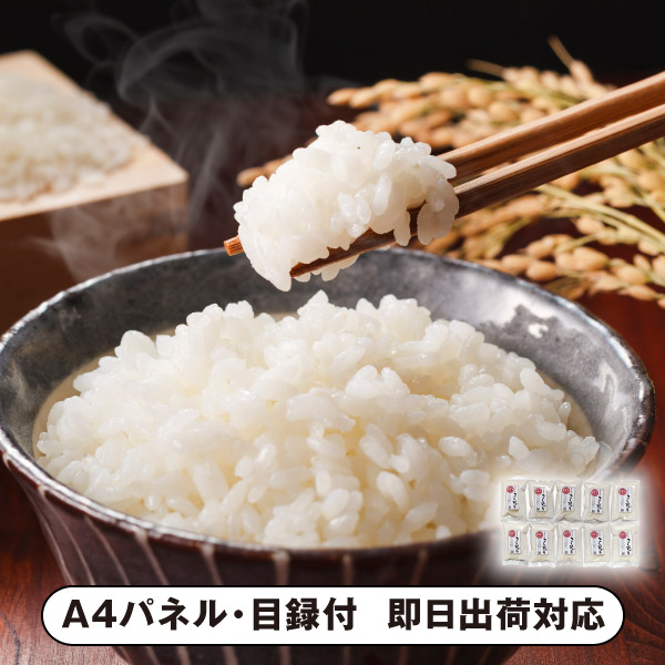 | 内容 | 無洗米こしひかり1合パック(150g)×10 A4パネル×1 |