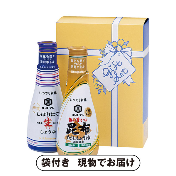 | 内容 | キッコーマンしぼりたて生しょうゆ(200ml)・キッコーマン旨み豊かな昆布だししょうゆ(200ml)×各1 |