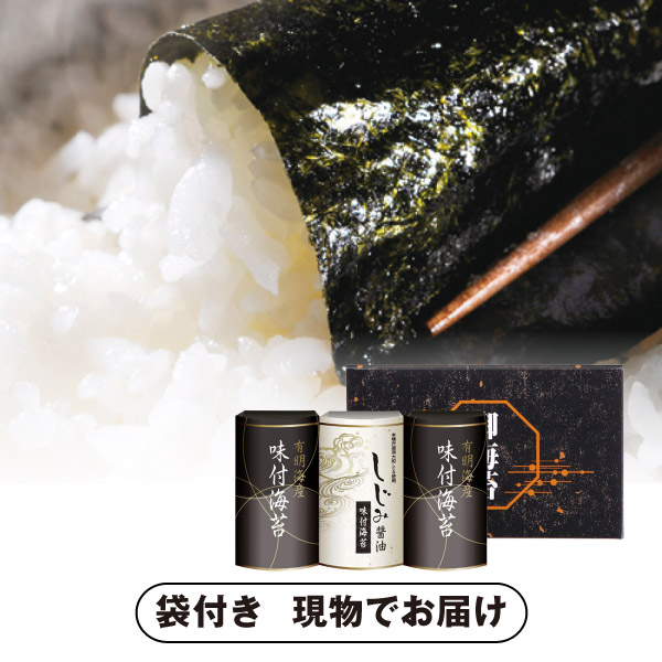 | 内容 | しじみ醤油味付のり(8切8枚×2)×1、有明海産味付のり(8切8枚×2)×2 |