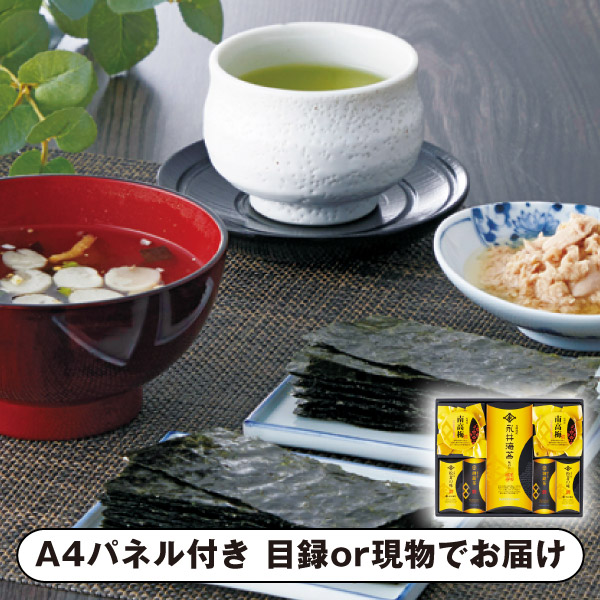 | 内容 | 永井海苔 味付海苔(8切6枚×2)×1、永井海苔 お吸い物(松茸風味)(3.3g×2)・紀州南高梅100g・深蒸し茶40g×各2 A4パネル×1 |