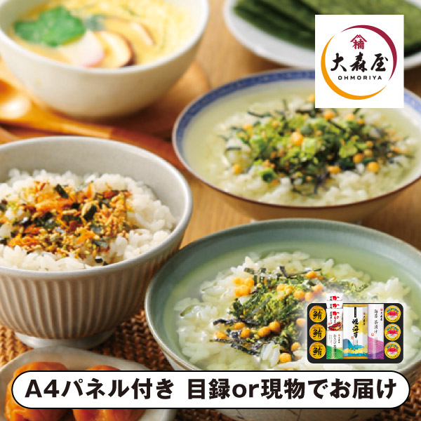 慣れ親しんだ美味しさ、大森屋の贈り物。焼海苔やお茶漬け、ふりかけなど、毎日の食事を豊かに彩るごはんのおともが揃っています。