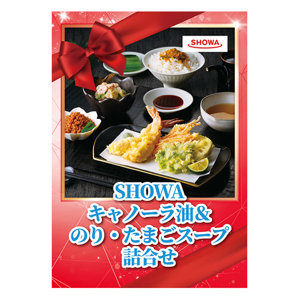 | 内容 | キャノーラ油 300g×3、有明海産味付のり(8切5枚)・たまごスープ6.4g×各2、スープ春雨わかめ醤油味(14.1g×2)・ふりかけ(たまご・さけ)(2.5g×3)×各1 A4パネル×1 |