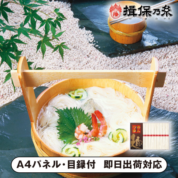 | 内容 | 揖保乃糸 上級50g×18、めんつゆ20ml×9 A4パネル×1 |
