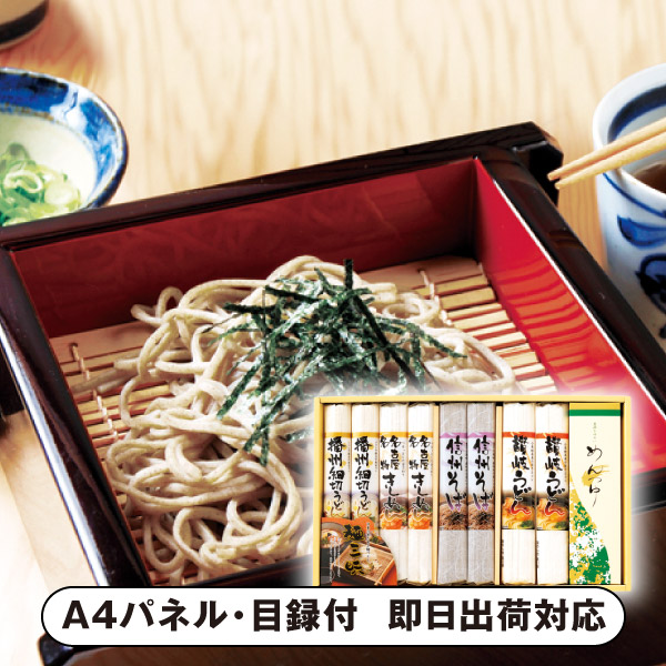 | 内容 | 讃岐うどん180g・信州そば120g・名古屋名物きしめん150g・播州細切うどん150g×各2、めんつゆ25g×6 A4パネル×1 |