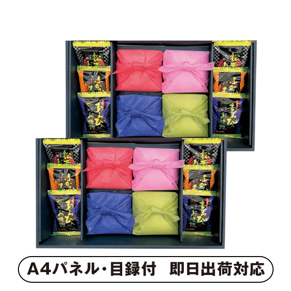 | 内容 | 新潟県産コシヒカリ150g×6、松茸のお吸物4.2g・ふかひれスープ5.5g・あわび入お吸物4g×各4、笹川流れの塩80g×2 A4パネル×1 |