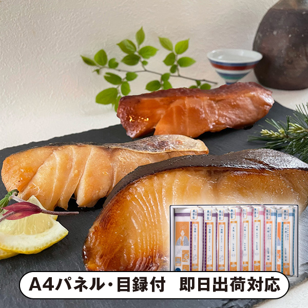 内容 | 銀鱈みりん漬(80g)×3、目抜仙台味噌漬(80g)×3、真鱈仙台味噌醸し麹漬(80g)×2 A4パネル×1 |