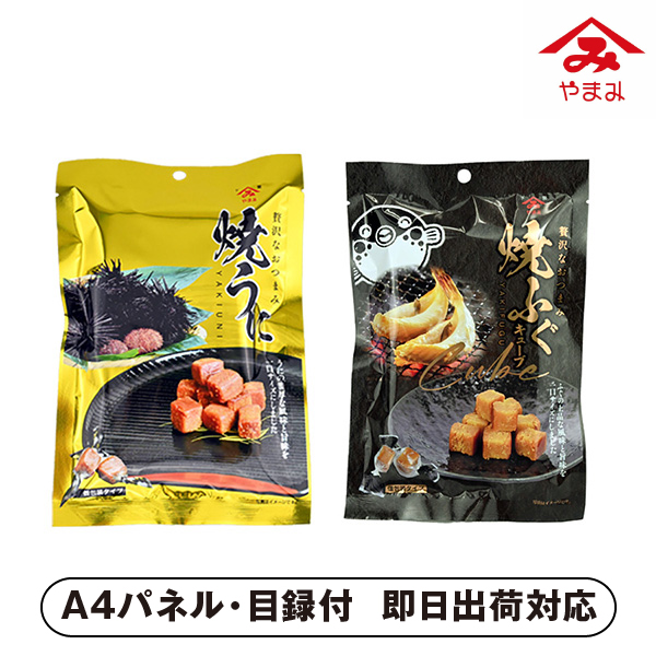 内容 | 焼うに20g3・焼ふぐキューブ3袋 A4パネル×1 |
