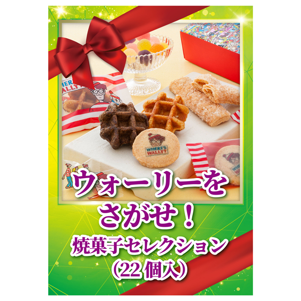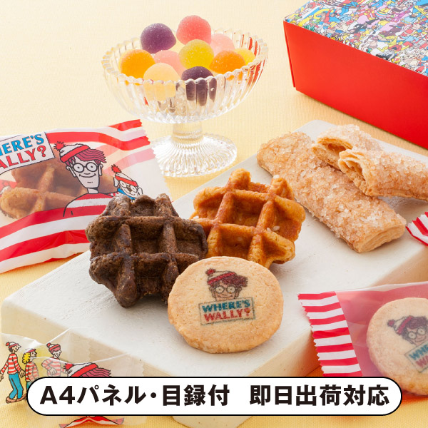 ウォーリーのオリジナルプリントクッキーと食べ応えのあるワッフル、サクッとした食感が楽しいステックパイ、色とりどりのフルーツゼリーを詰合せにしたギフトセットです。