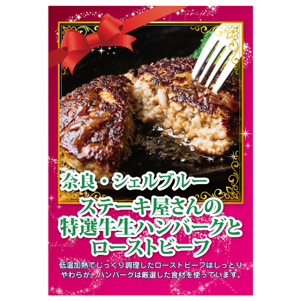 産地直送グルメ│奈良・シェルブルー ステーキ屋さんの特選牛生ハンバーグとローストビーフ【パネル・目録付】|景品ならPIARY(ピアリー)