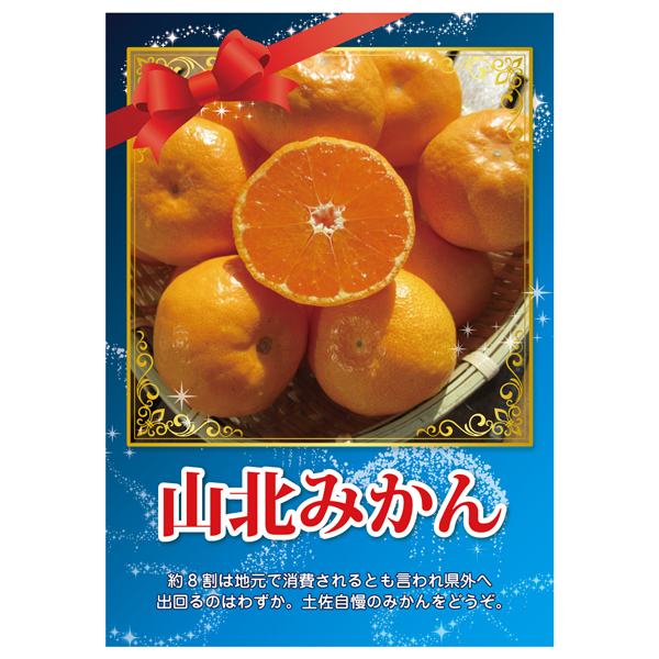 黒潮が運ぶ温暖な気候と、豊かな自然に恵まれた香我美町・山北は、高知が誇るみかんどころ。山北みかんの特長は、薄くやわらかな果皮と、絶妙なバランスの甘さと酸味。約8割は地元で消費されるとも言われ、県外へ出回るのはわずか。土佐自慢のみかんをどうぞ。