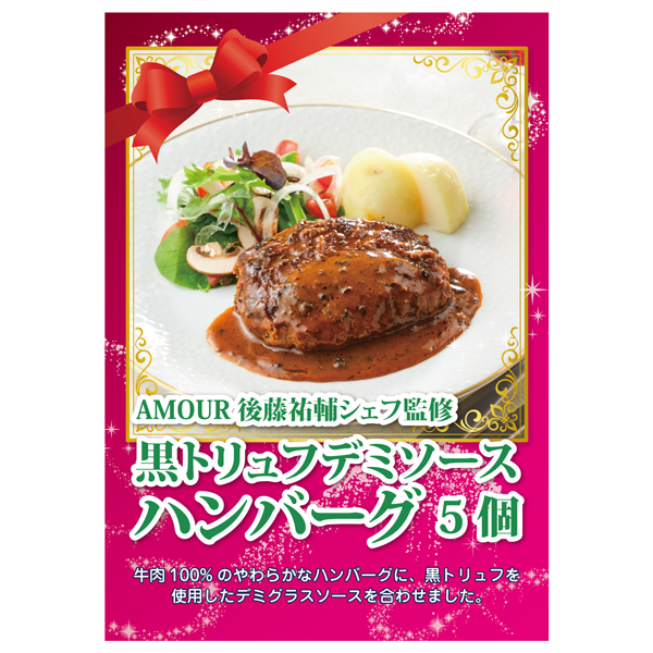 産地直送グルメ│AMOUR 後藤祐輔シェフ監修 黒トリュフデミソースハンバーグ(5個)【パネル・目録付】|景品ならPIARY(ピアリー)
