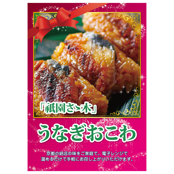 熟練した生産者に大切に育てられた国産うなぎの蒲焼きをスライスし、もっちり食感のおこわと合わせ、祇園さゝ木オリジナルのタレで仕上げました。電子レンジで温めるだけで手軽にお召し上がりいただけます。ぜひ、京都の銘店の味をご家庭で。