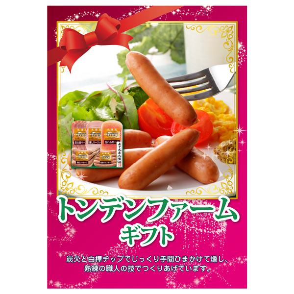 | 内容 | 炭火焼ベーコン(80g)・荒挽ウインナー(100g)・生ハムロース(40g)・骨付きソーセージ(180g)・燻しロースハム(60g)×各1 A4パネル×1 |